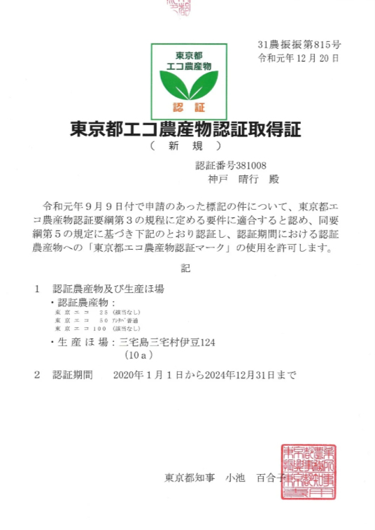 東京都エコ農産物認証取得