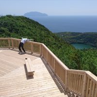 雄山中腹を通る環状道路を、七島展望台から坪田方面にしばらく進むと見えてくる木製展望台。