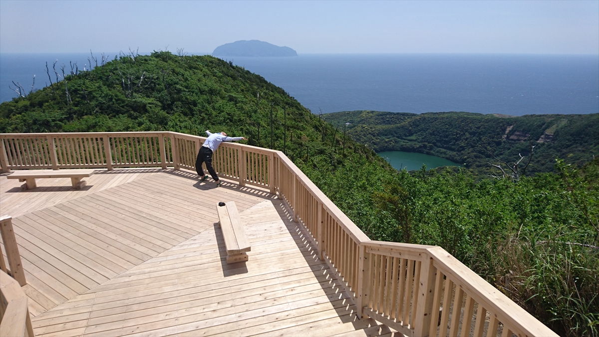 大路池と御蔵島、天気が良い日は八丈島まで望めるウッドデッキ展望台